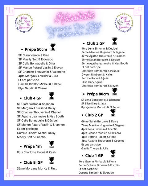 [Résultats cavaliers du Rond Pré]